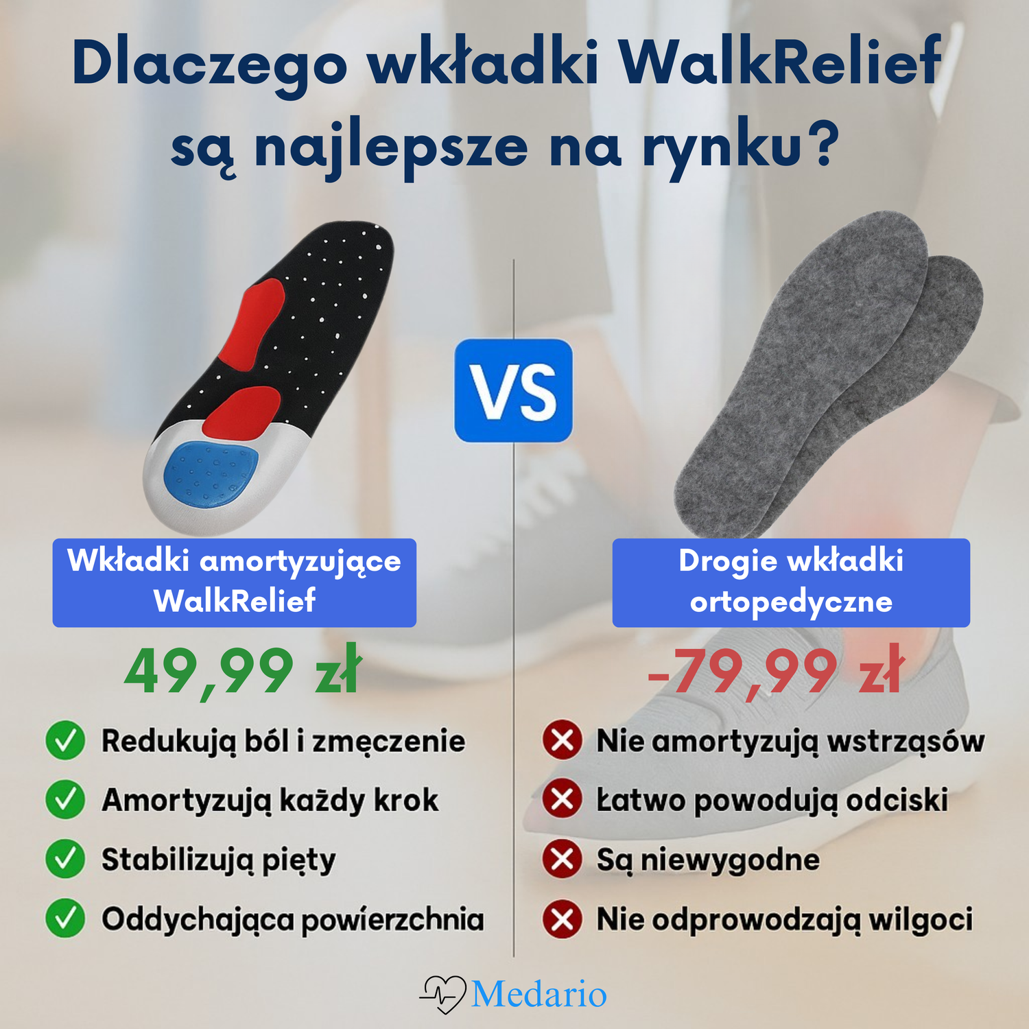 Tymczasem WalkRelief kosztują tylko 49,99 zł i przynoszą ulgę każdego dnia — bez bólu, leków i zbędnych wydatków.